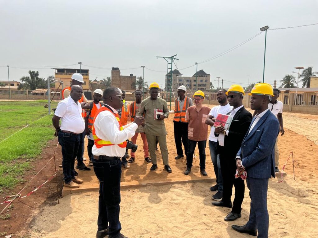 Sur le chantier de Kotokoli Zongo, dans la Commune d’Agoè-Nyivé 4, où s’élève aujourd’hui un complexe sportif devenu un véritable joyau architectural, Hounou Amavi n’a pas dérogé à sa règle : être là, aux côtés de ses techniciens. Casque ou un petit chapeau sur la tête et gilet de sécurité, il échange, écoute, oriente et valide les décisions techniques essentielles pour garantir une exécution irréprochable des travaux.